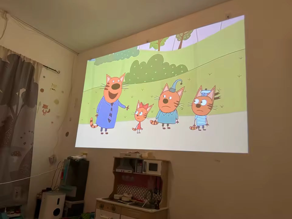 Tak, nawet bezpieczniejszy niż telewizor! Projektor rzuca światło odbite, które jest o wiele łagodniejsze i mniej męczy wzrok dzieci podczas oglądania bajek. 👶👀